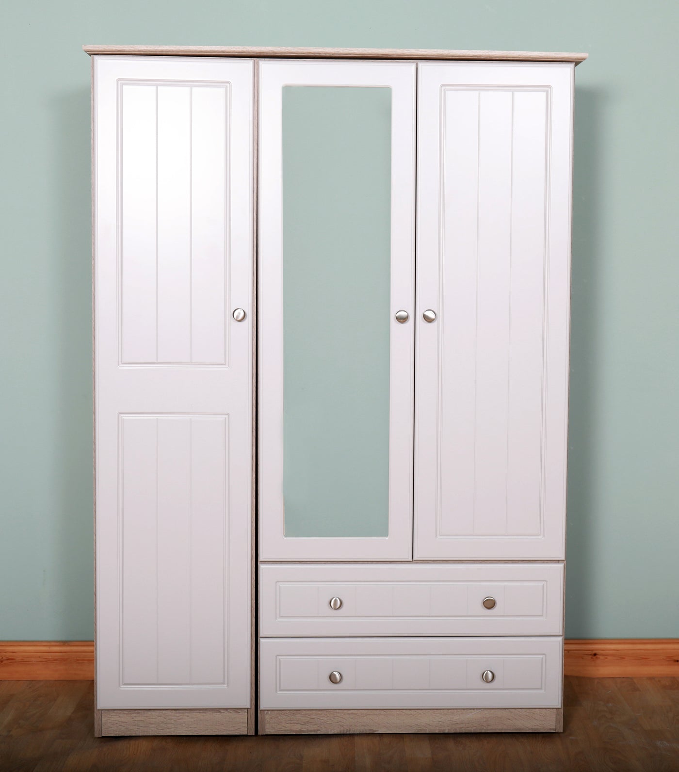 3 door 2 drawer wardrobe available in 7 different colours and handles.