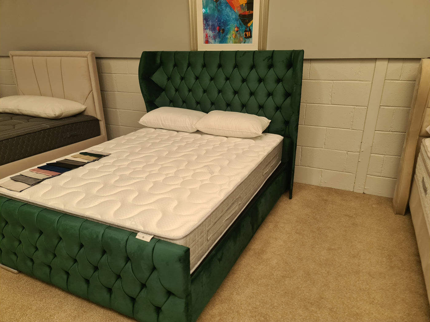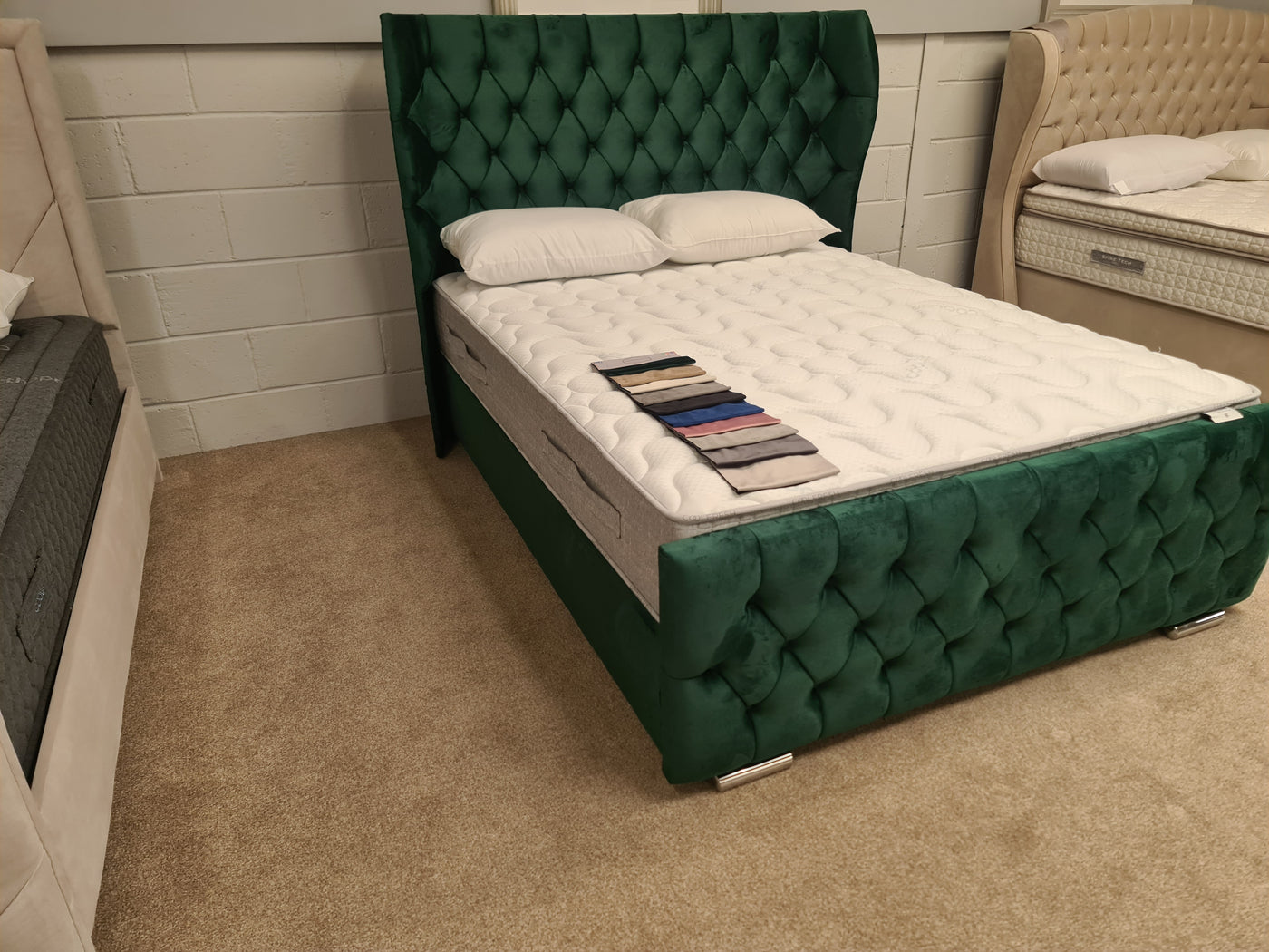 Expertly crafted and locally made, the Nimbus Bedframe is the perfect combination of style and quality. Featuring chrome feet and a wing style buttoned headboard, this bedframe adds a touch of elegance to any bedroom. Available in over 30 colors, it can be customized to fit any design aesthetic. Combined with a 1200 pocket sprung Backmaster mattress for extreme comfort this is for sure a Hot Deal.